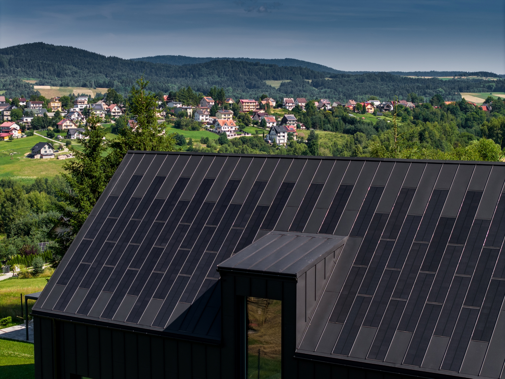 Dzięki systemowi SOLROOF nawet budynki o prostej architekturze, mogą zachować swój charakter bez wpływu masywnych paneli fotowoltaicznych na ich estetykę.